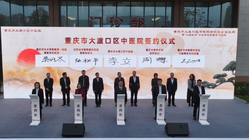 2025年11月5日,为深入贯彻落实党的二十届四中全会精神和市委市政府关于推动中医药高质量发展的重要部署,重庆大学药学院积极行动,在大渡口区中医院新院区全面投用暨“义渡岐黄”中医药优质服务月活动启动仪式上,与大渡口区中医院正式签署合作协议。重庆大学药学院党委书记周辉出席签约仪式。