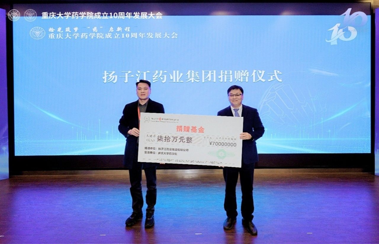 扬子江药业集团重庆海富医药有限公司向药学院捐赠发展基金,助力举办健康文化节,发扬光大药学文化。