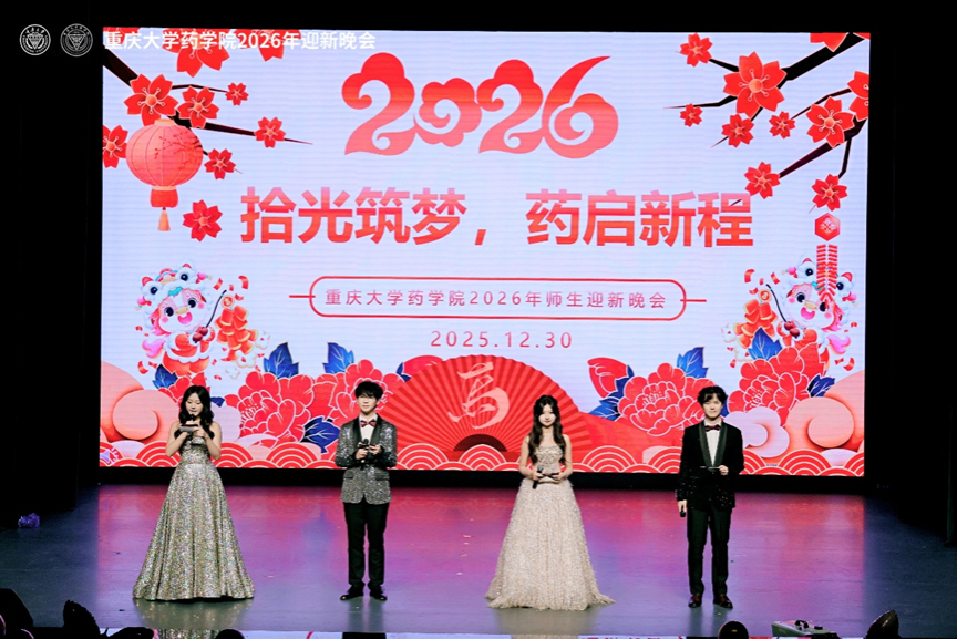 2025年12月30日,重庆大学药学院2026年师生迎新晚会在科学城校区虎溪校园小剧场举行。本场晚会以“拾光筑梦,‘药’启新程”为主题,既是药学院师生绽放魅力、欢庆新年的青春盛会,同时也是2025重庆大学扬子江健康文化节系列活动的收官之战。