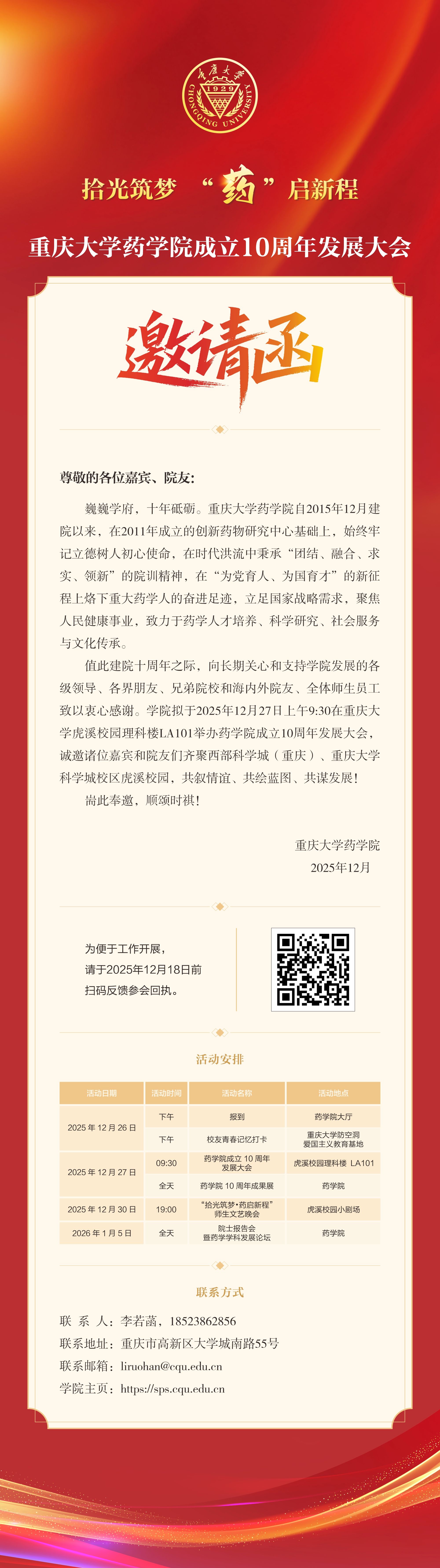 拾光筑梦 “药”启新程 重庆大学药学院成立10周年发展大会邀请函